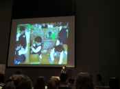 声優等で、活躍されている田中真弓さんから、おもしろい手遊びやペープサートを紹介していただきました。 会場に来ている先生たちがどんどん舞台にあがり、全員で楽しみながら手遊びや体操等を行いました。ペープサートのコーナーの時には、物語の読み方を熱心に指導してくださいました。子どもたちと楽しめる遊びをたくさん保育の中に取り入れていきたいと思います。 【山上明絵】